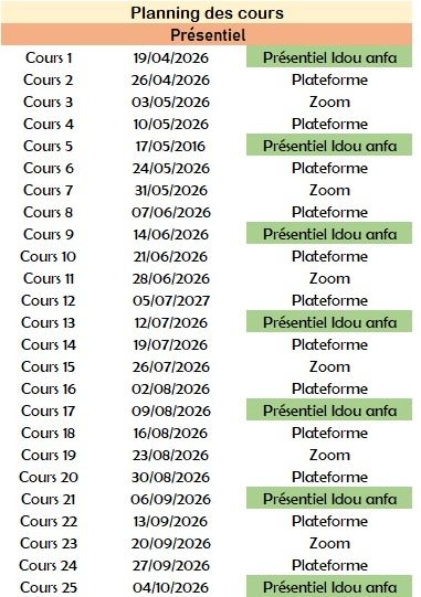 أوقات الحصص الحضورية من الساعة الثانية زوالا الى السادسة مساءا مع استراحة تتخللها وصلة شاي
